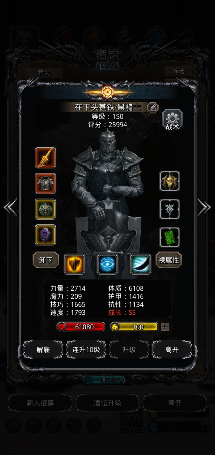 技能设置:剑宗2人群+盾击,蛮荒2人群+挥击,巫医50%奶自己、100%奶队友,黑骑只开嘲讽。蛮荒最好就带裂狱,不必带★斧,应为裂狱伤害已经够了,而且更高的力量BUFF使得蛮荒更肉。另外黑骑不开攻击是因为大多数对手的黑骑都带了反伤盾: