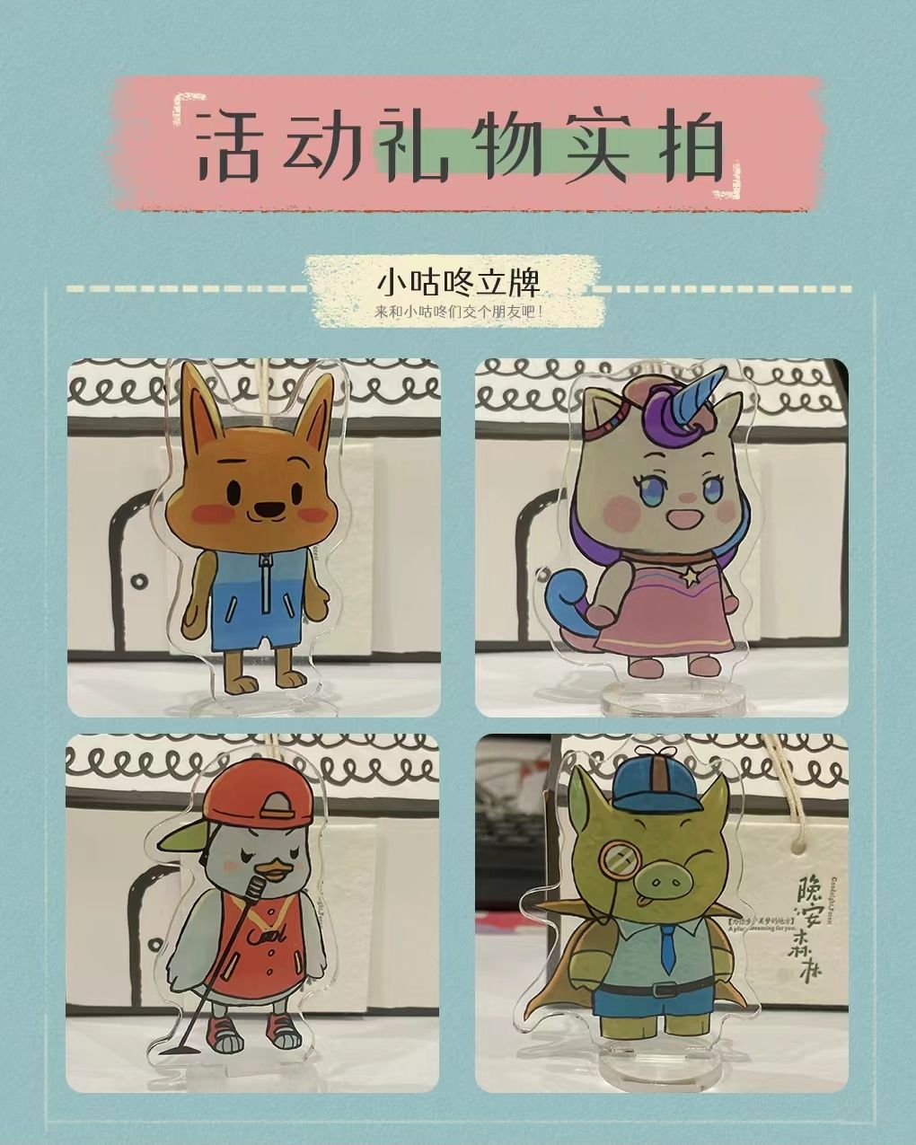 我们将从参与本次活动的玩家当中抽取15位,送上两份礼物,每份礼物2枚小咕咚立牌。