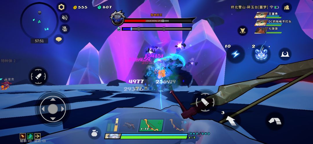 武器是一把四铭刻的弓箭共享双子爆率只有4.9,强化+13,蓝色词条是找宝箱提升的。