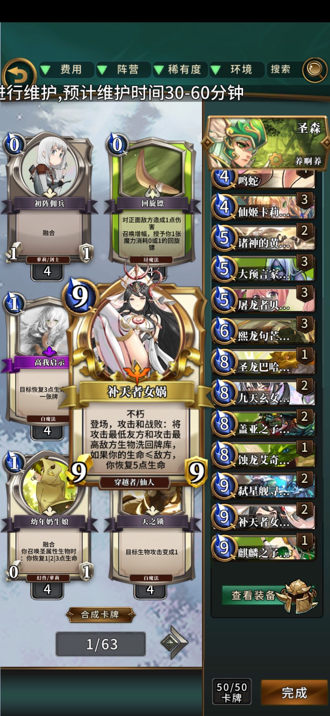 本卡组的回血牌为英灵时间和女娲,请酌情使用