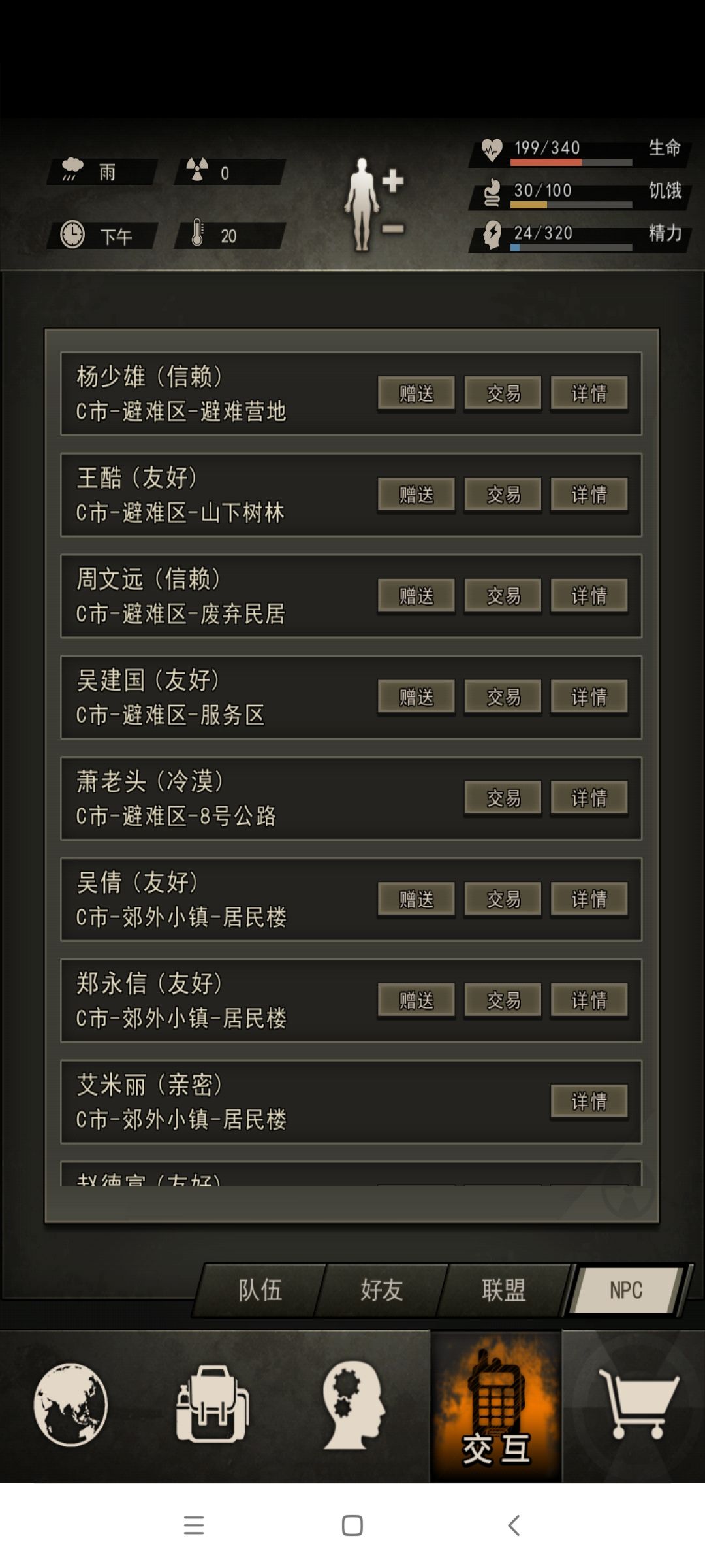刷够东西后继续主线,汽油任务,你要先在搜到5瓶汽油才能换取消息,千万别点错成交互物品,不然还得继续搜汽油(坑)