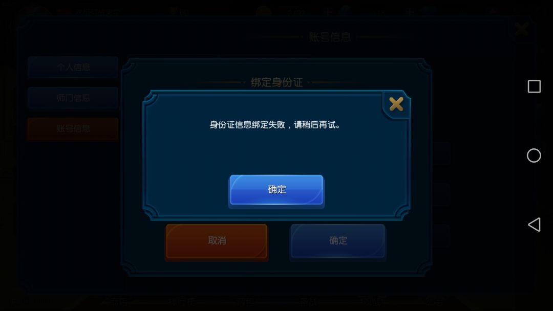如图,试了四五次了,游戏关了再打开还是这样,身份证自己的绝对没错。游戏时间只剩1.5小时,没得玩了。