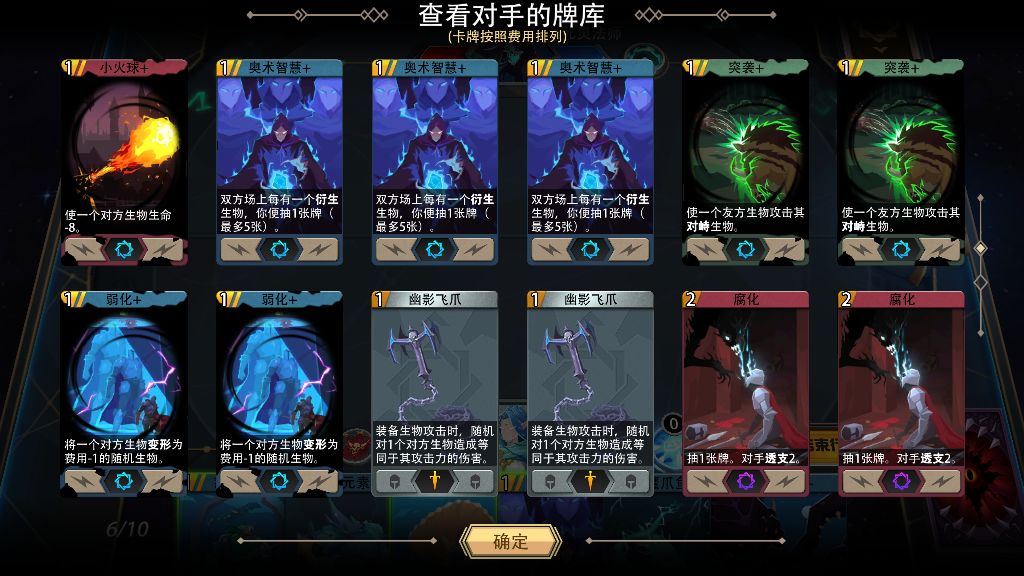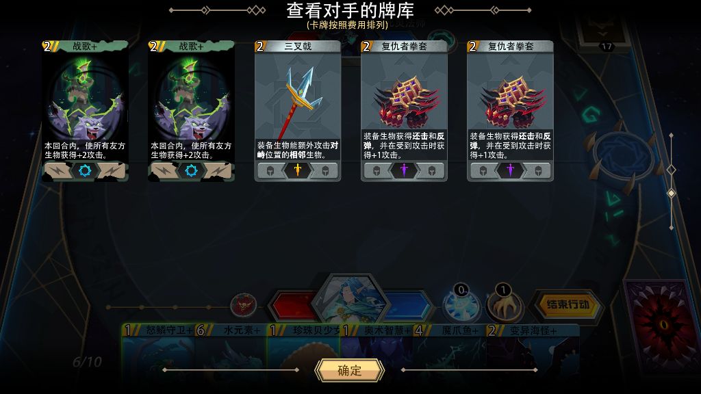 只需要刷幻象吞噬兽就行,但是对方手中有弱化,注意保护key卡,4费的防法术生物(蛇妖海巫),3费的唯一选中生物(引雾兽)都能有效保护key卡
