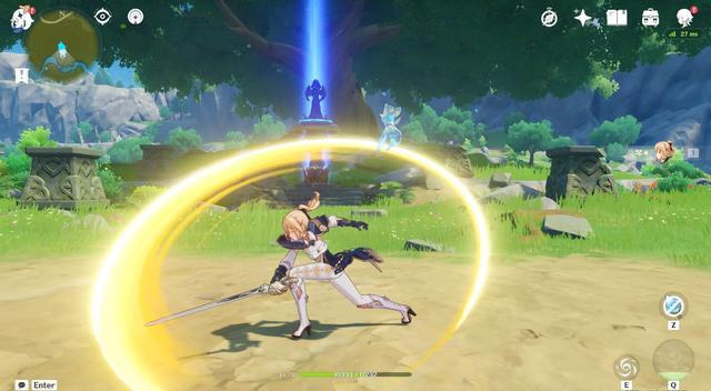 注意细节:(1)通过“长按+跳”的操作可以只聚怪,不击飞敌人;(2)摔伤、撞击等伤害与琴的属性无关;(3)长按可以聚集可莉的诡雷、安柏的兔兔伯爵,甚至是离岛的枫叶,最后将之击飞出去;(4)锅巴比较特殊,只会被聚集,不会被击飞。