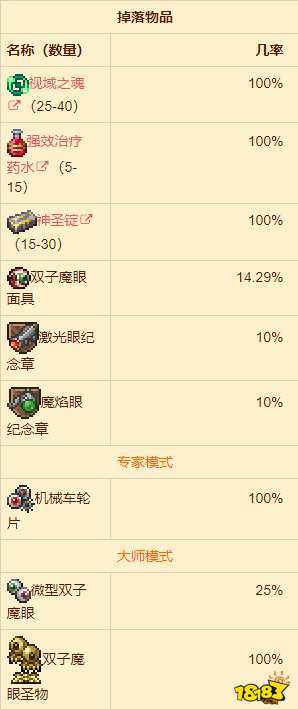 1. 当你打败肉山之后,在恶魔祭坛或猩红祭坛被摧毁后,但是没有打过双子魔眼的时候,它们每晚都有10%几率生成;