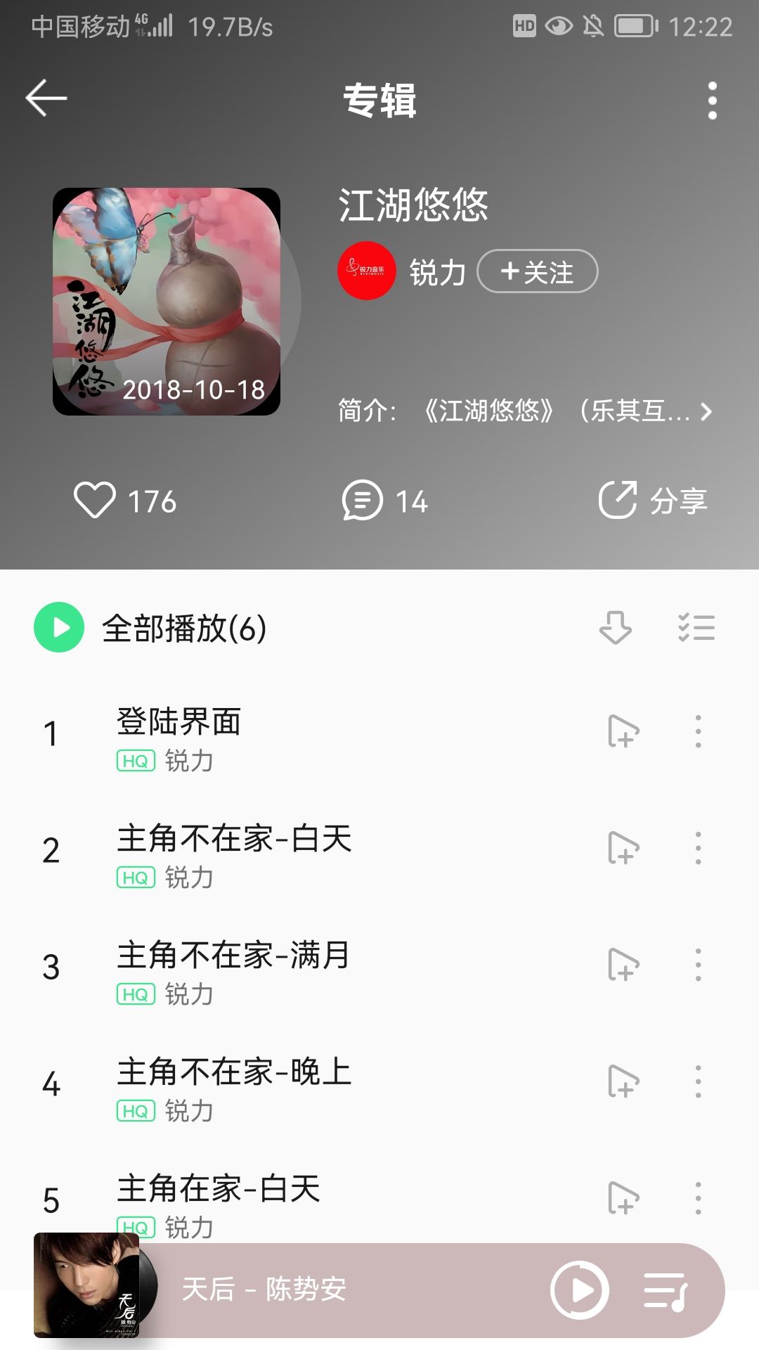 打开QQ音乐,搜索:江湖悠悠,点击【专辑】。 作者为:锐力 的那个就是江湖悠悠里的背景音乐了,喜欢的朋友点个赞吧👍👍~