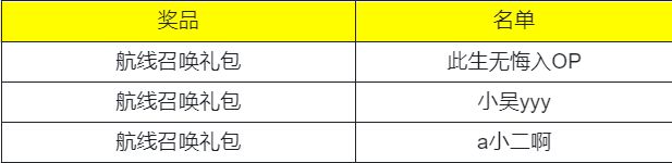 船长们好,开奖时间到啦~ 恭喜以下船长获得活动奖励,请在7天内添加发奖大使QQ (3235248646) 领奖,我们将在30个工作日内发奖(如出现添加一天仍未通过可进入发奖大使QQ空间留言,留言内容:活动名称以及中奖人QQ。)