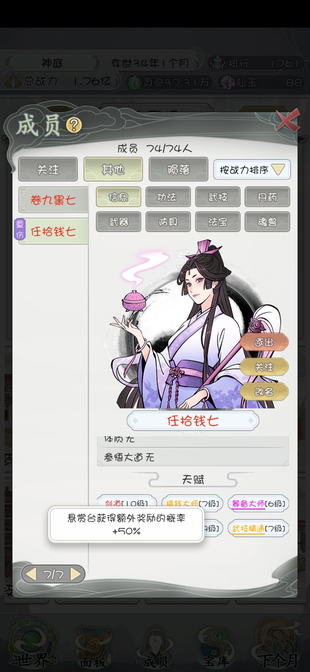 〈任务达人10级〉:悬赏任务额外奖励概率+50%(推荐工具人搭配最好)刷仙玉必备
