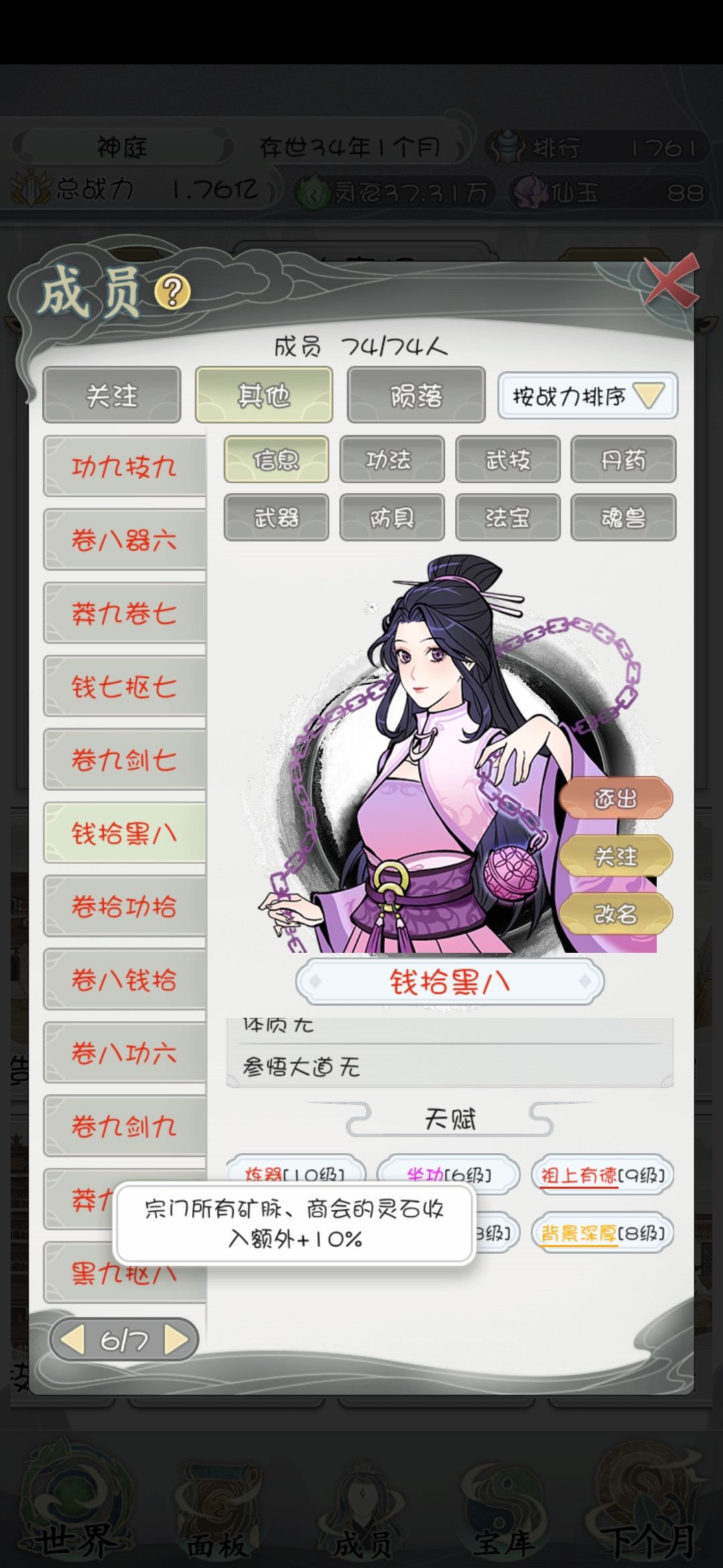 〈搞钱大师〉:矿、商会+10%额外灵石(推荐刷这个,有黑市灵石早就自由了)