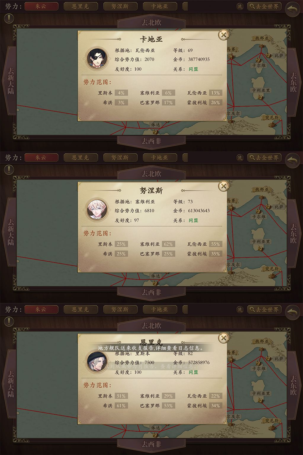 2、如果你和其它NPC加起来100%的会有可能宣战抢其它NPC的占有度;