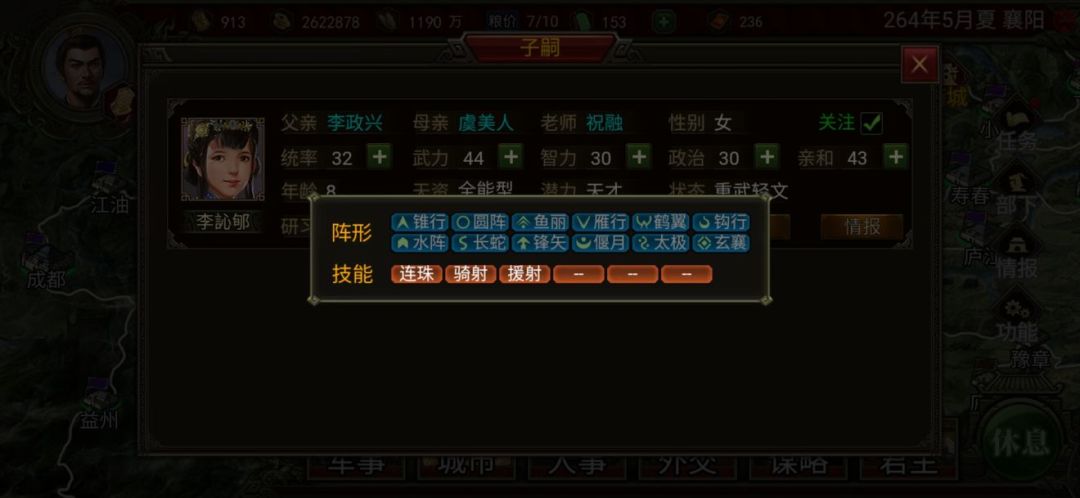 在群雄时代里,君主在婚配后将会拥有最多三名子嗣,可以在游戏内对孩子们进行各个方面的培养,甚至可以让诸葛亮成为孩子的老师噢!(我的孩子我做主!)正逢儿童佳节之时,岚岚也想知道主公大大们的子嗣都学会了哪些技能、成长属性都是偏向哪些方面,不妨baby们将自己的“娃”晒出来吧~