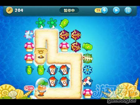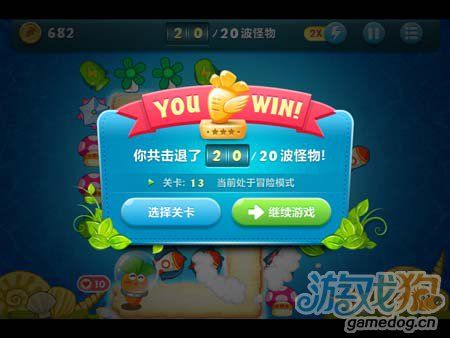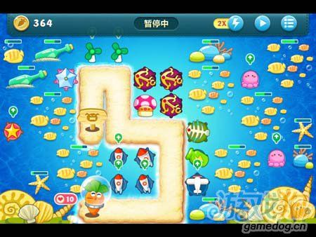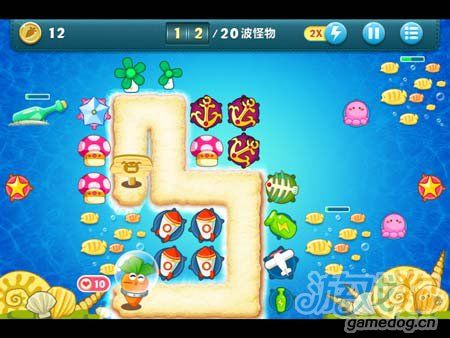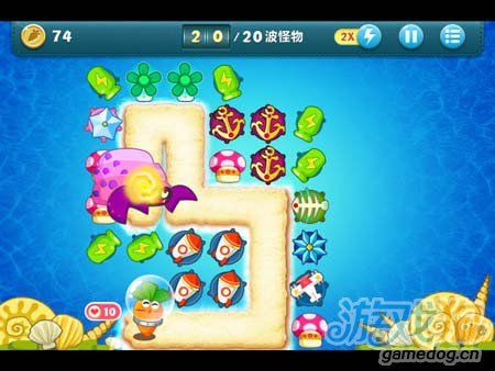 海星开出一个鱼刺后攻击上面的宝箱,在第3波的时候将大宝箱打开,果断买到1个放上深海蘑菇,其他的3个升到满级。