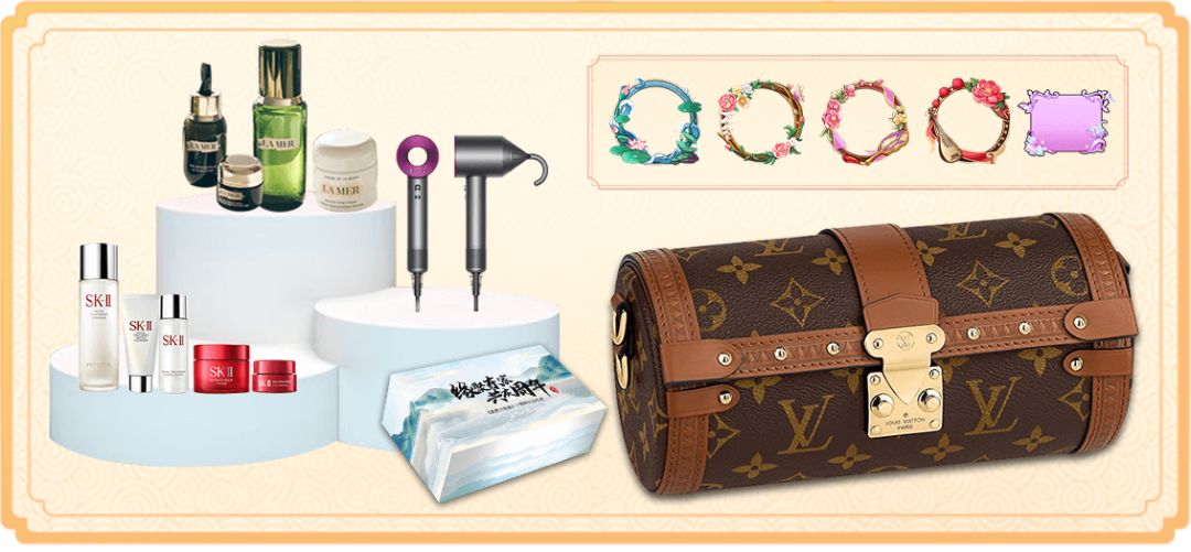 LV PAPILLON TRUNK手袋\海澜之谜套装、戴森吹风机SK-Ⅱ神仙水套装等你来赢!除此之外还有周年限定礼盒专属限定头像框、气泡框等惊喜奖励大放送喔~心动不如行动!各位女神快来游戏内报名参与吧!