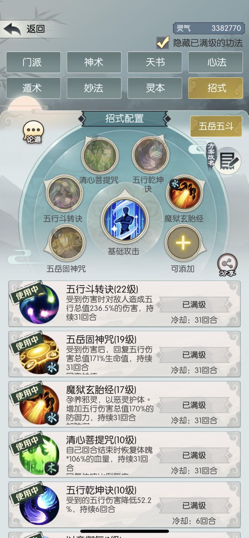 回血主要靠五岳和回春决 加回春决主要是因为后期怪被鬼圣削弱攻击力以后打你只有1血,但附带的真伤有一个亿伤害。