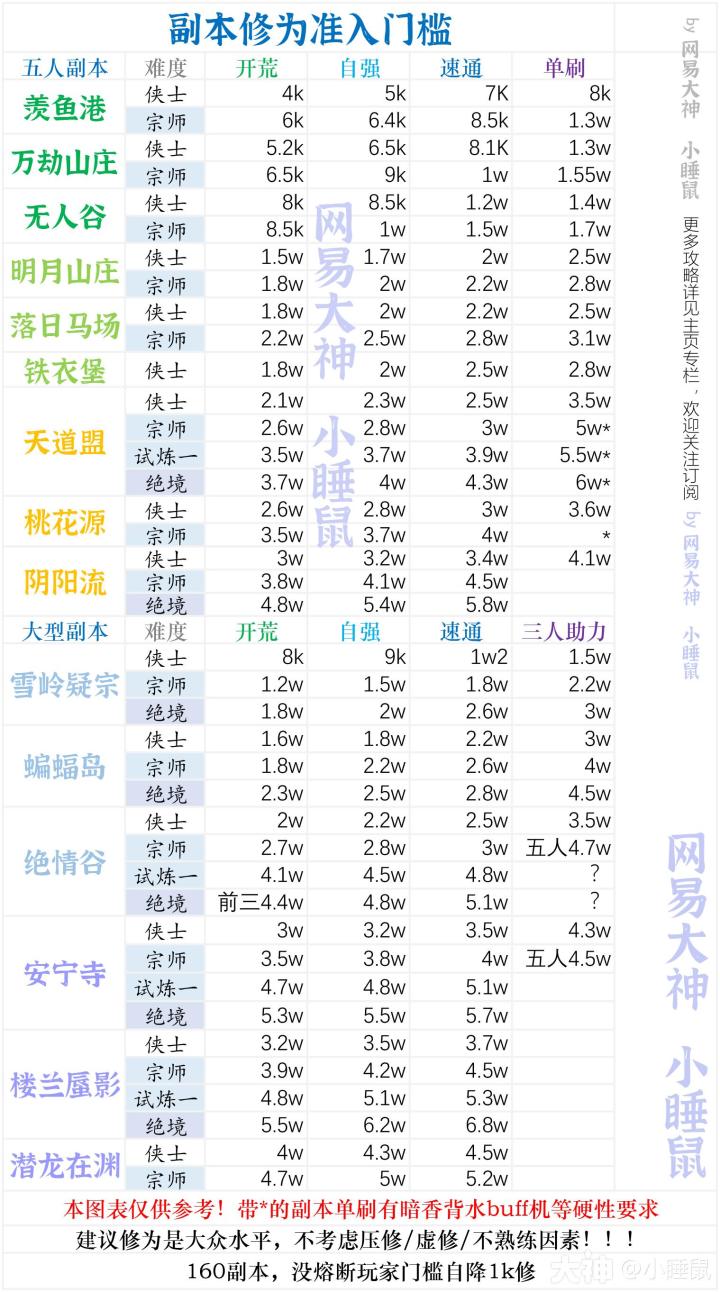 新版各副本修为门槛参考来咯