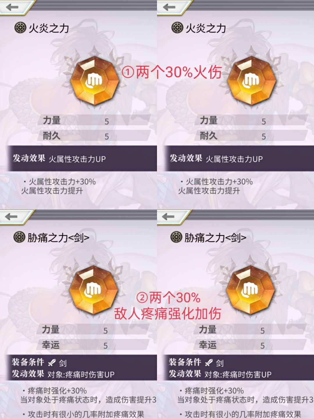 问:我要用阿鲁多打输出,是装备两个提升30%火属性伤害的火灵晶好一些,还是装备两个敌人有疼痛状态加30%伤害的痛灵晶好一些