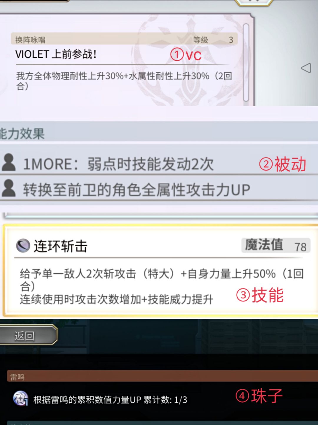 ①人物的vc/换阵吟唱 人物的被动 人物的技能 人物的珠子效果等都属于战斗效果