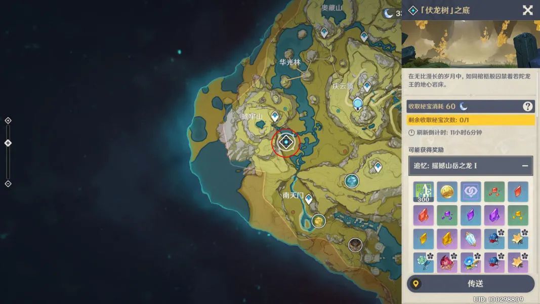 下图是「若陀龙王」的具体挑战地点,位于璃月地区。