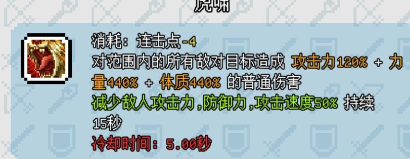 (为什么这么说 因为虎啸和破甲一起叠加的效果并不能提升打的速度)