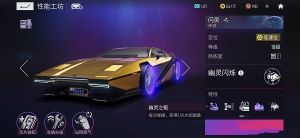 幽灵闪烁:进入幽灵状态,并且长时间获取推进动力,一旦发生摩擦碰撞会快速闪现至前方位置,每次碰撞后车身闪烁时,特技能量会快速衰减。