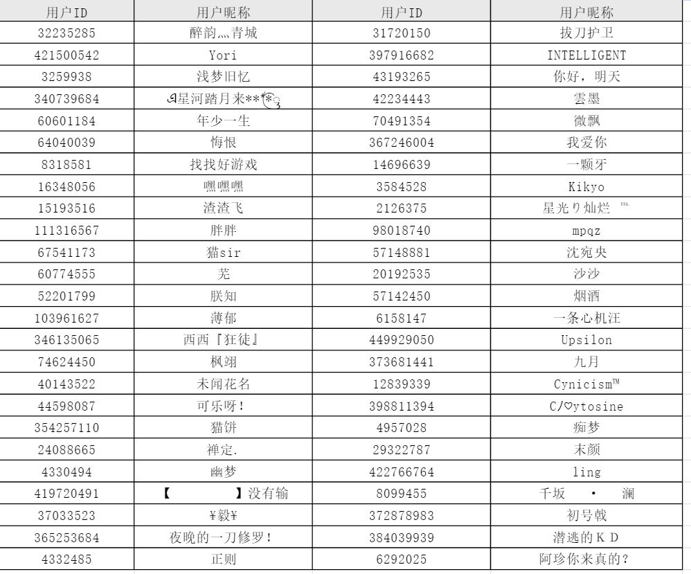 恭喜以下小伙伴获得本次测试资格,请关注站内信测试资格通知,并用问卷填写手机号码进行游戏注册登录。