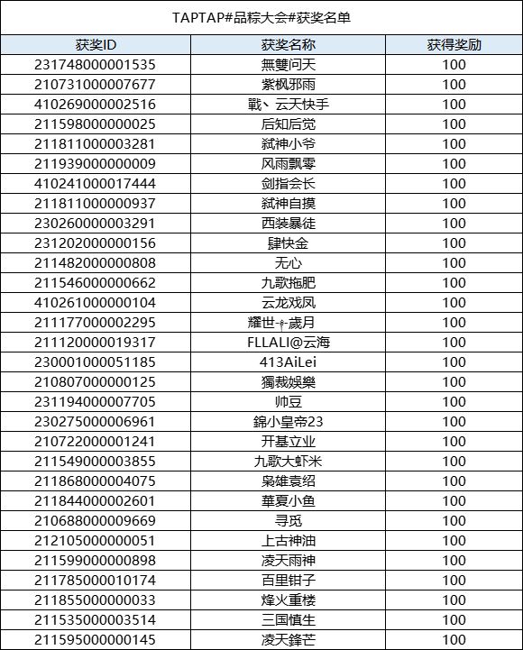 恭喜以下主公获得本次奖励,奖励会在7个工作日发布到对应的邮箱,请注意查收