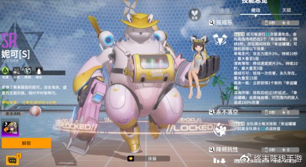 如果只看妮娅[S]被动的话,BUFF的面板很高,积攒战技能量的能力也很香,但BUFF的维持需要一直完美装填,在前期没成型前比较吃操作,而且0军衔下需要打空4次弹夹,这让积攒效率大大下降。所以在前文,我才说军衔和专武有条件的话一定要冲一下。