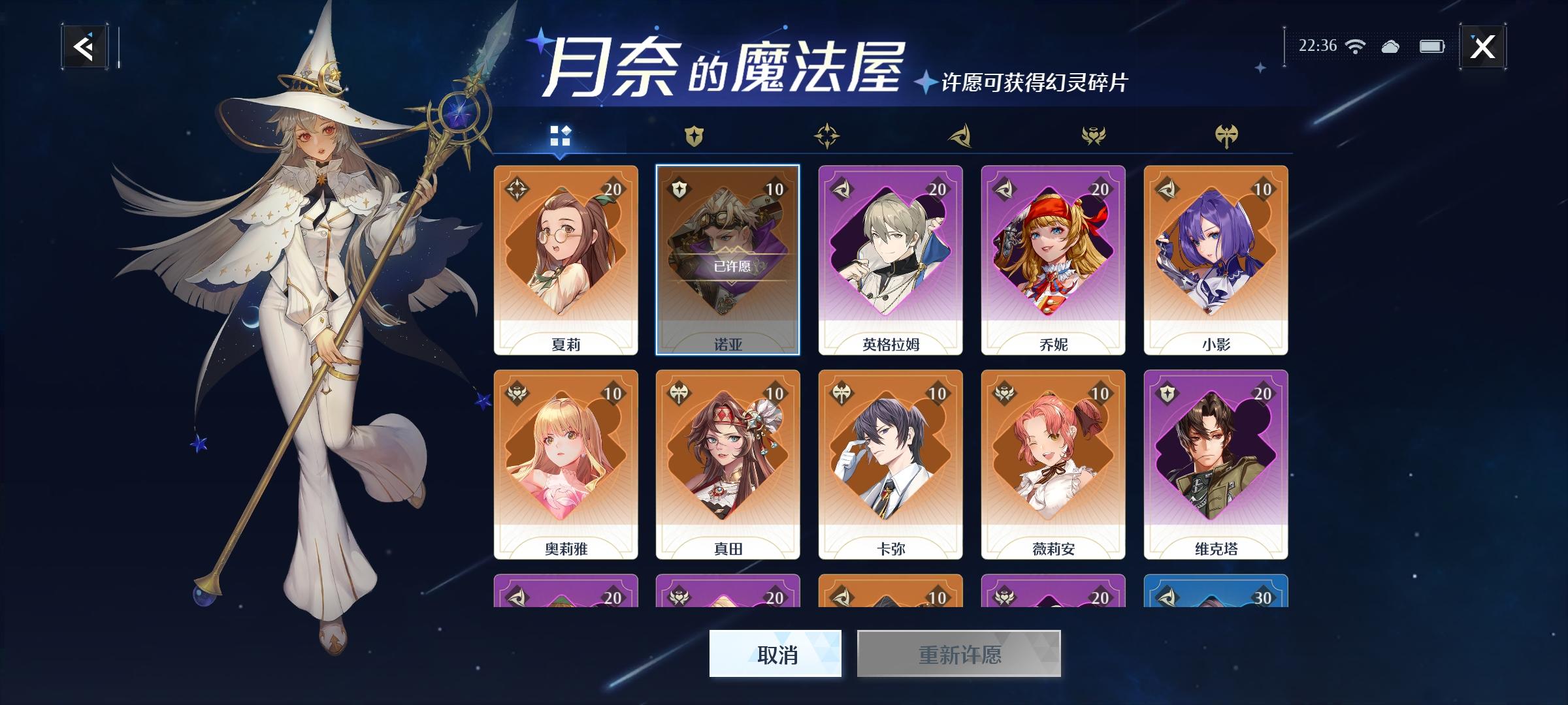 每日活跃度达到150点时,便可使用月奈的魔法屋进行许愿,魔法屋可许愿的幻灵碎片目前仅包括初始普通池内的所有幻灵碎片,后续加入普通池的幻灵碎片暂时不可许愿。建议冒险家们许愿传说幻灵的碎片,以达到收益最大化。以传说幻灵的碎片为例,周一至周四每天可许愿5片碎片,周五至周日每天可许愿10片碎片,许愿后次日5点即可领取碎片,每周共计可获得50片传说幻灵的碎片(其他品质幻灵的碎片请冒险家们自行探索)。