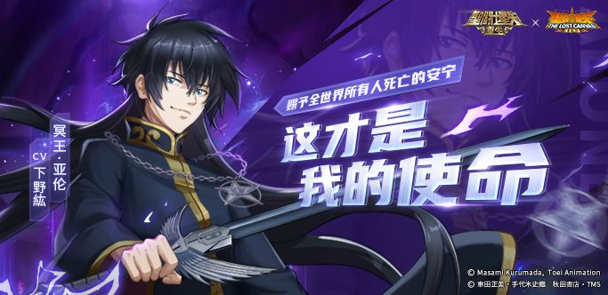 《圣斗士星矢:重生》联动版本继人气女主女神·萨沙现身后,作为萨沙的哥哥、天马的挚友、这个时代冥王哈迪斯的化身——冥王·亚伦也即将登场。觉醒了冥王力量的他在降临圣域后又会带领冥斗士展开怎样一番表现?还请大家拭目以待!