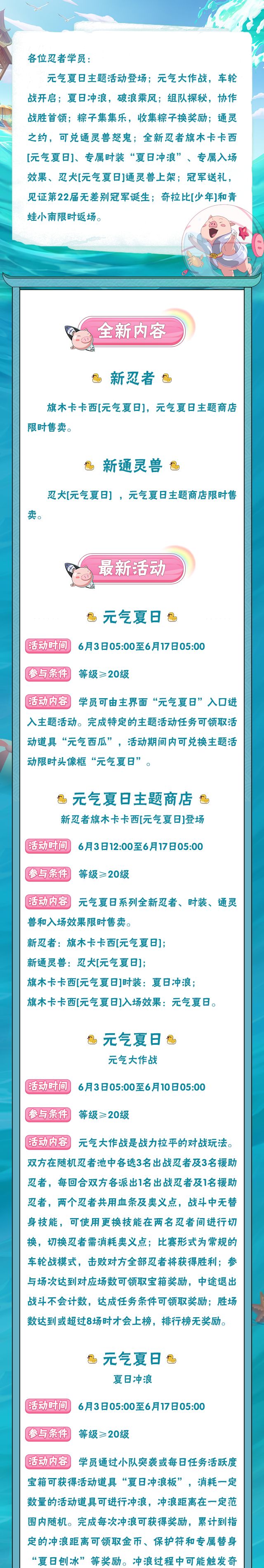 【本周公告】旗木卡卡西「元气夏日」登场,新通灵兽与时装同步开售!