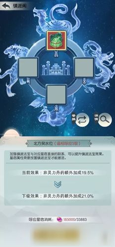 四个方位可以消耗灵玉进行升级,升级后对应的加成效果会显著提高。但是若进行更换镇派,则会有几率掉级。