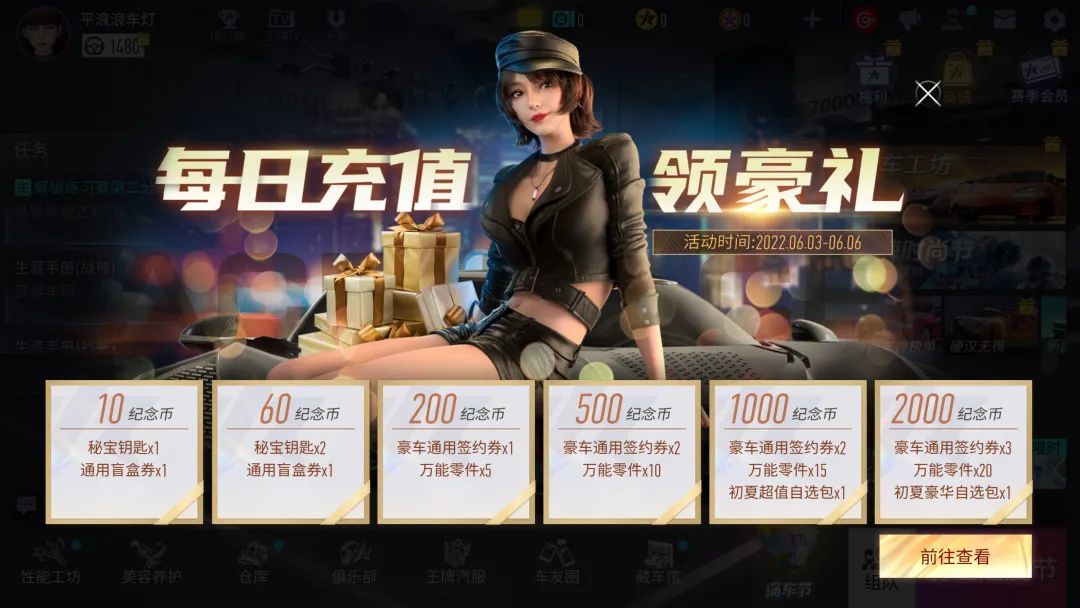 - 端午假期放肆飙,每日充值领豪礼!盲盒抽奖券、豪车签约券、万能零件等超值返利好礼拿到手软,更有初夏超值/豪华自选包等你来领,打开有惊喜哦~