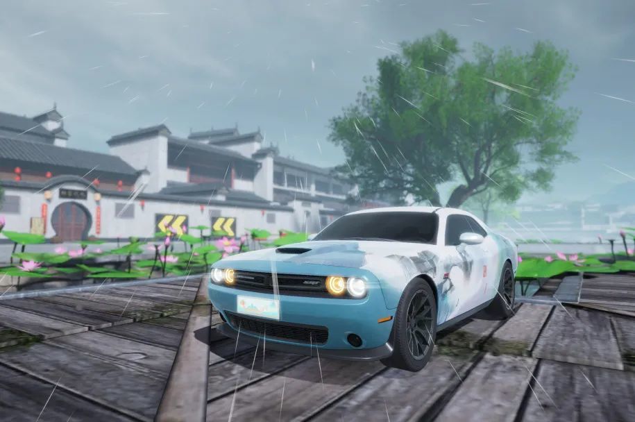 - 当道奇挑战者装配全新涂装-烟雨江南后,车身秒变一幅“泼墨山水画”,将赛车本身的复古气质与大气典雅国风完美结合,驾驶着它就像在钟灵毓秀的山谷间翱翔,穿梭其间,令人心旷神怡!