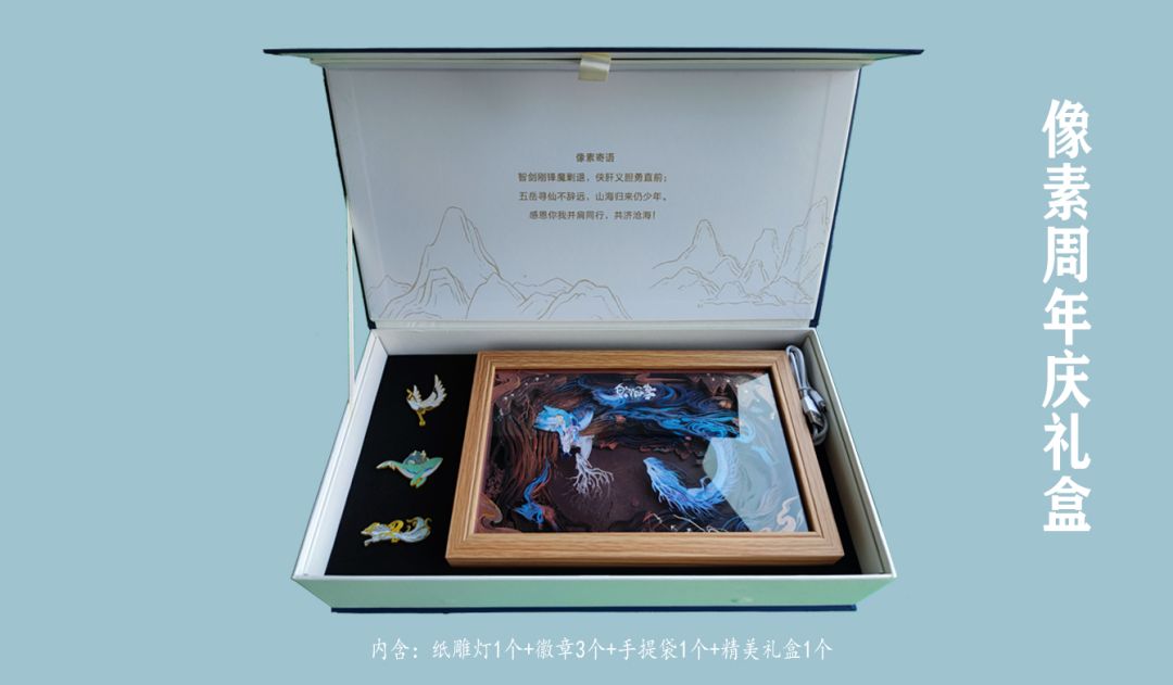 咪姐将会在所有符合要求的回复中,随机抽取10名玩家,每人送出像素周年礼盒1个(礼盒内容: 3个微章+1个纸雕灯+1个手提袋) ![[嗒啦啦4_好耶]](https://img.tapimg.com/market/images/d378b7a8f38cae2d3dfb6170d918238b.gif)