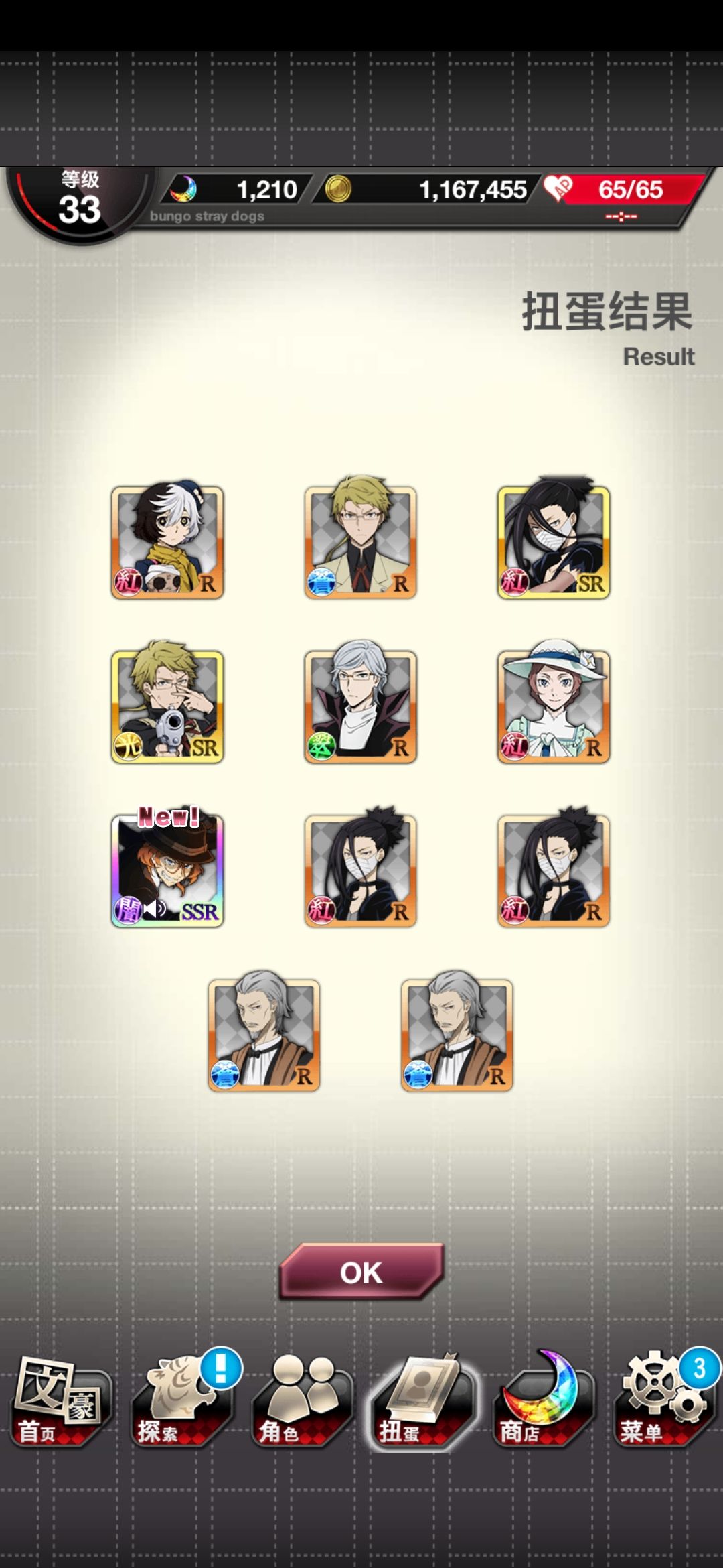 第一发〔黑手党干部〕中也,第二发〔罗生门〕芥川,第三发镜花和敦敦,第四发无,第五发出泳装