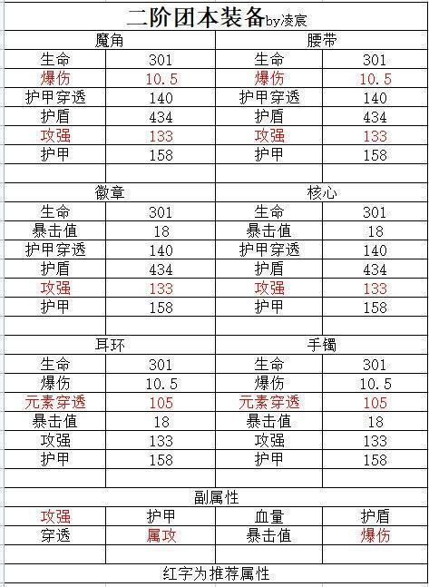 上图为凌宸大佬做的二阶星界外装属性图,按需查阅即可