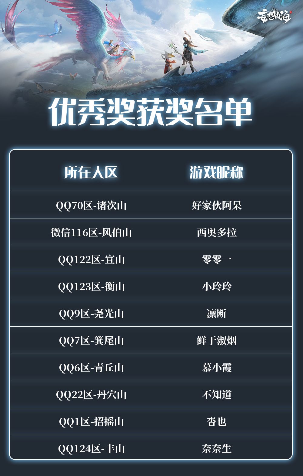 优秀奖以下为优秀奖(10人)的获奖名单,每位旅者可以获得玄马·元素过载