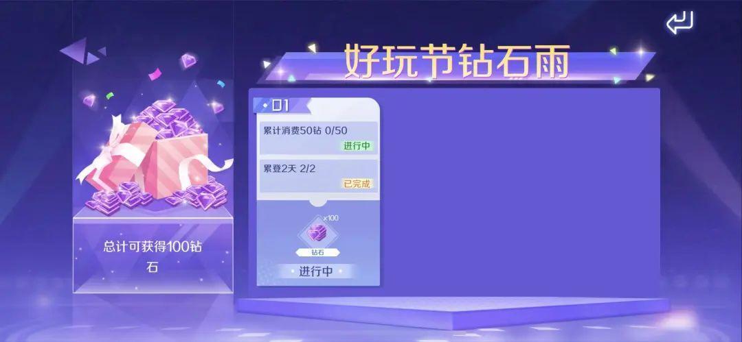 4.【好玩节钻石雨】 总计可得100钻石礼