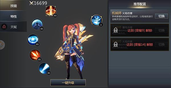 机械师拥有不同的专精技能,分别是机械师(火焰伤害)、工程者(雷电伤害)以及重炮者(火焰伤害)三套技能,小技能之间玩家可以根据自己的喜好和所处占据的情况自由搭配,选择火属性或者雷属性进行战斗。