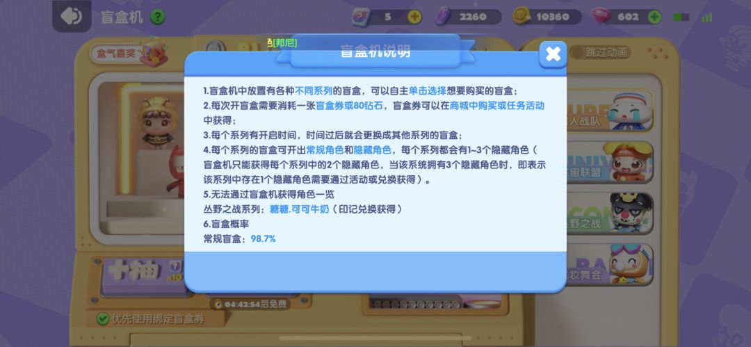 1、盲盒(抽卡)机制合理:泡泡超人的盲盒机制我认为是有点让人不愉快的,以前嫉妒欧皇,这个游戏没有特别的欧皇,每个卡池有大隐藏有小隐藏(游戏内没有公示大小隐藏概率不同),要想抽到大隐藏必须抽出相应的3-5个相同的小隐藏,这真的让人很不愉快(没有人想一直抽同款),简直不是一个抽奖游戏(运气好也抽不到),只能靠堆数量才达到目的。我认为大隐藏的概率和小隐藏的概率有高有低以作区分是可以的,但是没必要一定要保底几个小隐藏才能得到大隐藏。(游戏中公示的隐藏盲盒概率1.3%富含水分)