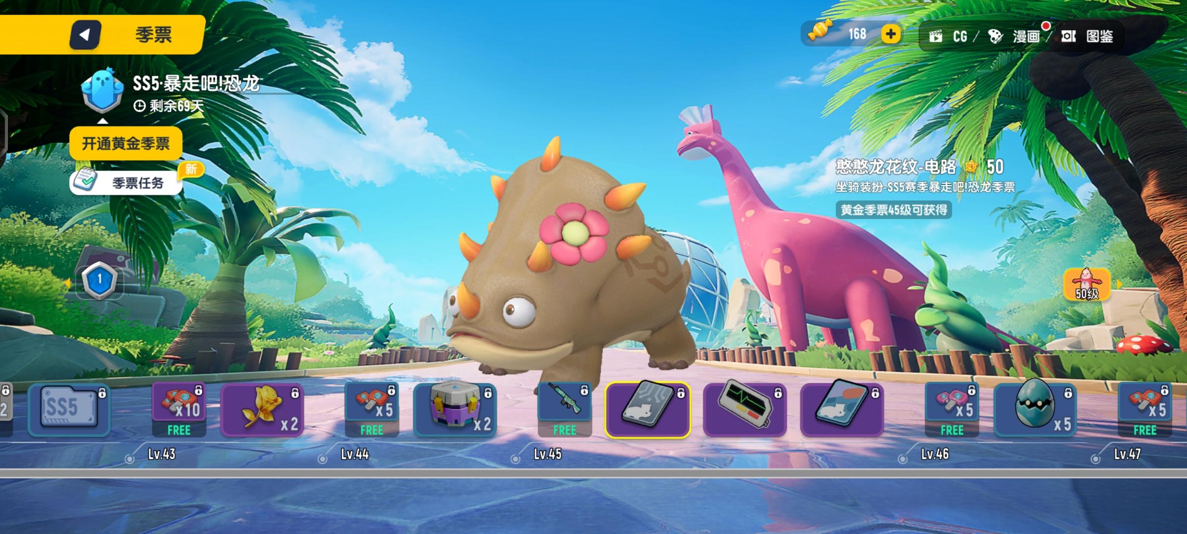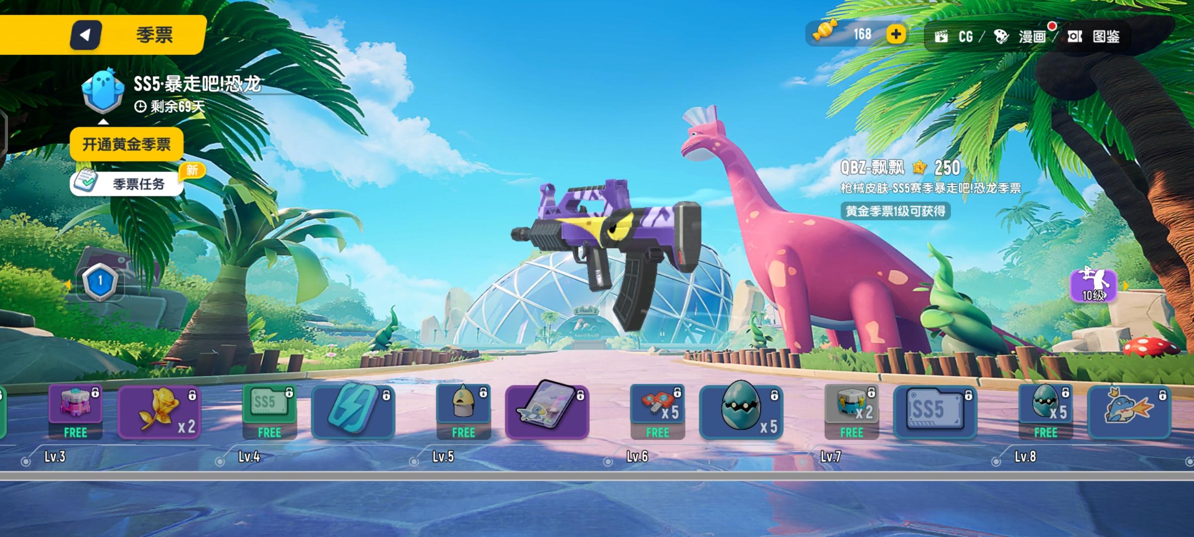 秀啊,这恐龙还能换视频换皮肤,还有一点就是这个赛季的黄金机票,就两个武器皮肤,总体来说,这个赛季挺创新的