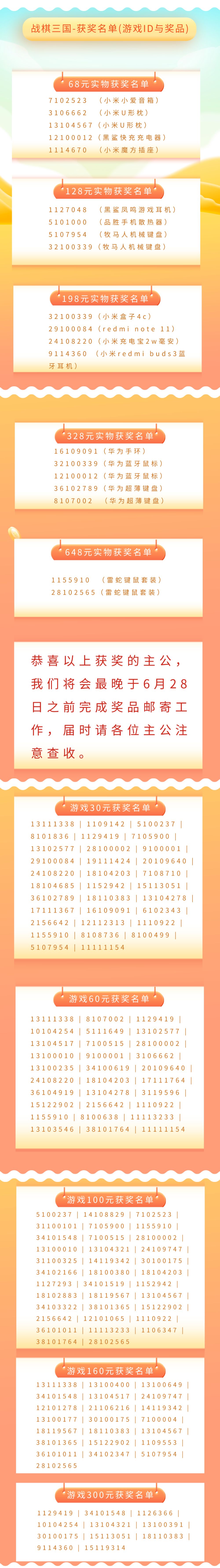 再次恭喜以上主公获奖,如有疑问可联系官方客服:787096020