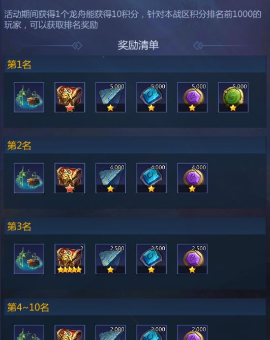 (1) 活动开启3天,活动结束后会有1天的领奖时间,领奖时间无法获得龙舟;(2)使用龙舟能增加经验,并有概率触发2、5、10倍暴击;