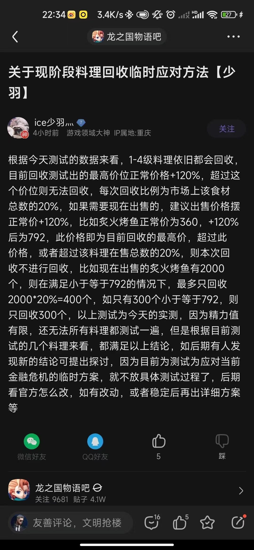 下图是小伙伴看到截屏发我的,讲的是一个料理回收这么个情况。