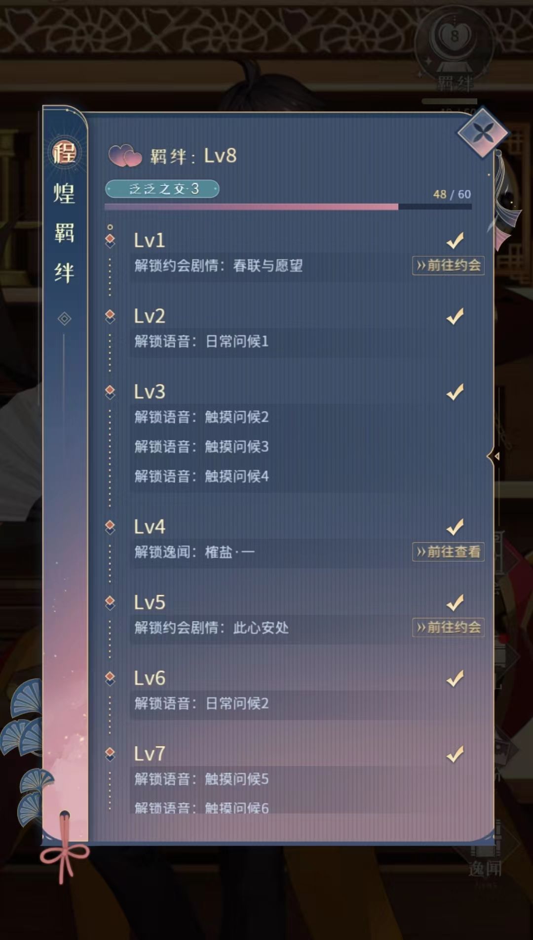 新增【羁绊等级】,提升与他的羁绊: