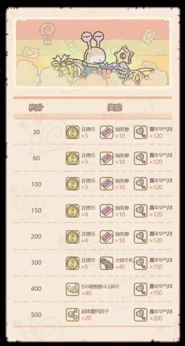 首先这是积分制的,每抽奖一次获得1积分(包括使用抽奖券),累计积分可以获得奖励,奖励中还有一个特殊物件叫做嘉年华气球,用来兑换其他奖励(这一小部分后面会说)。