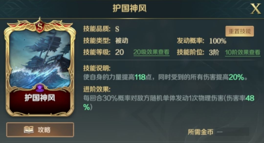 理查一世主技能,每次发动都能为副将带来70点力量的提升,持续2回合,提升的属性在2回合内可以叠加多次。