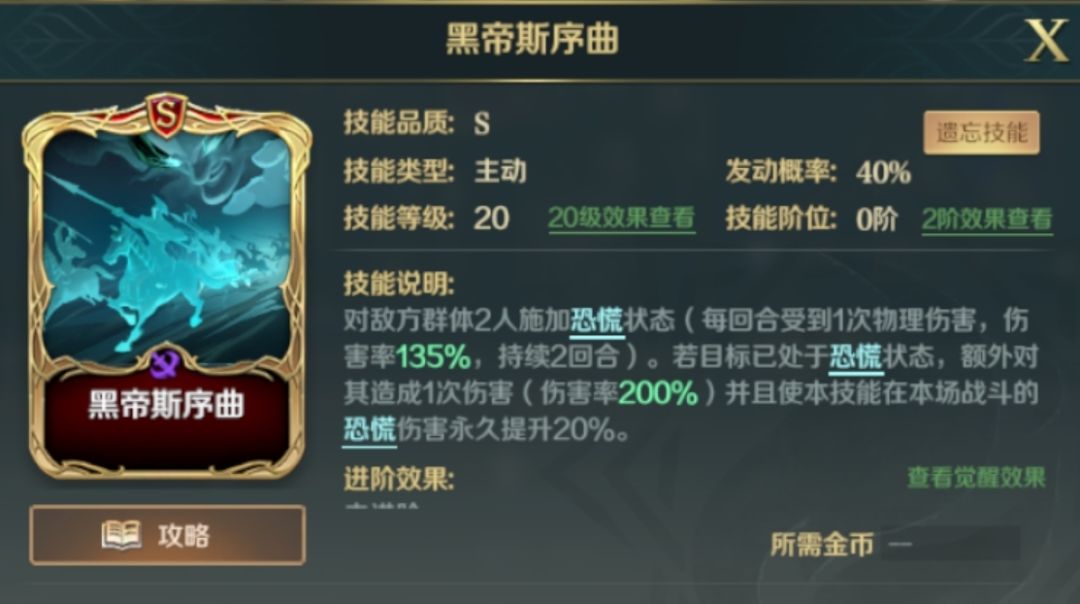 北条核心技能,瞬间提升当前力量的45%,还有群体2人250%的不俗面板。