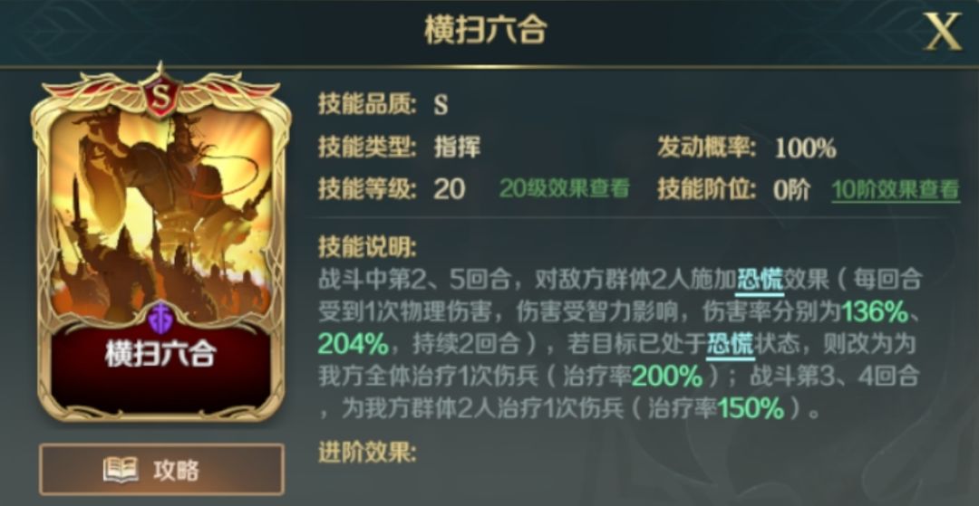 嬴政主技能,给对方施加恐慌状态,另外具有条件性治疗,增强续航能力。