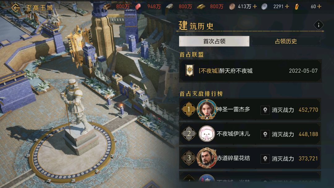 十级城:【不夜城】-2022年5月7日20点45分-君临洲-至高王城。
